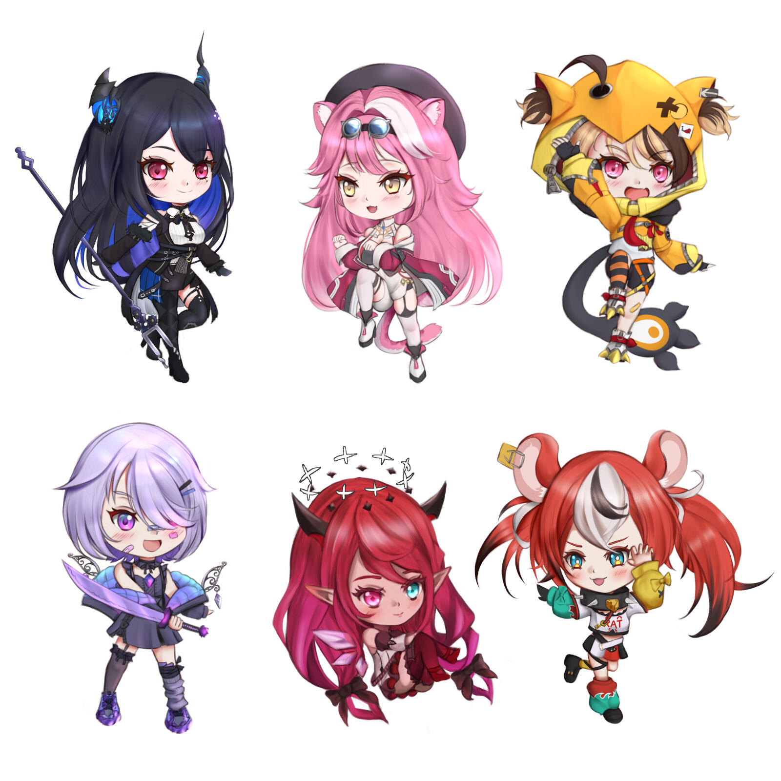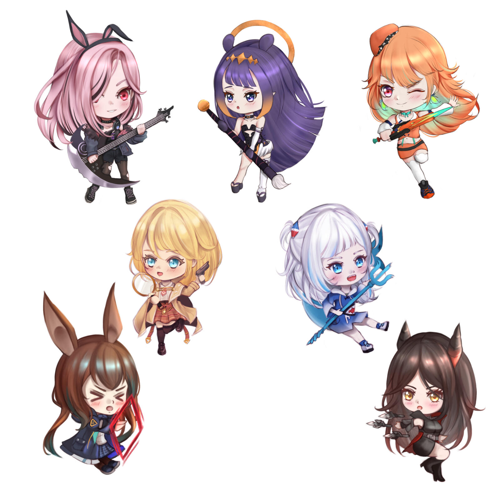 Chibi Keychain and stickersConverting popular anime and Vtuber characters into chibi form to maximise cuteness!My chibi designs are available as keychains and/or stickers.