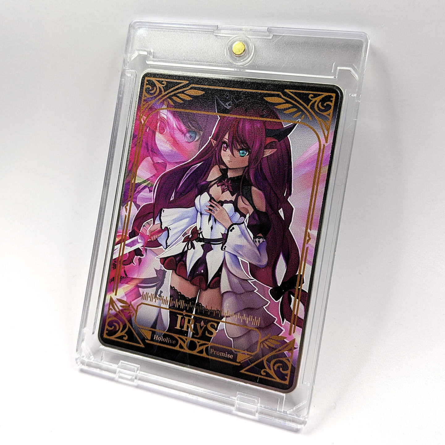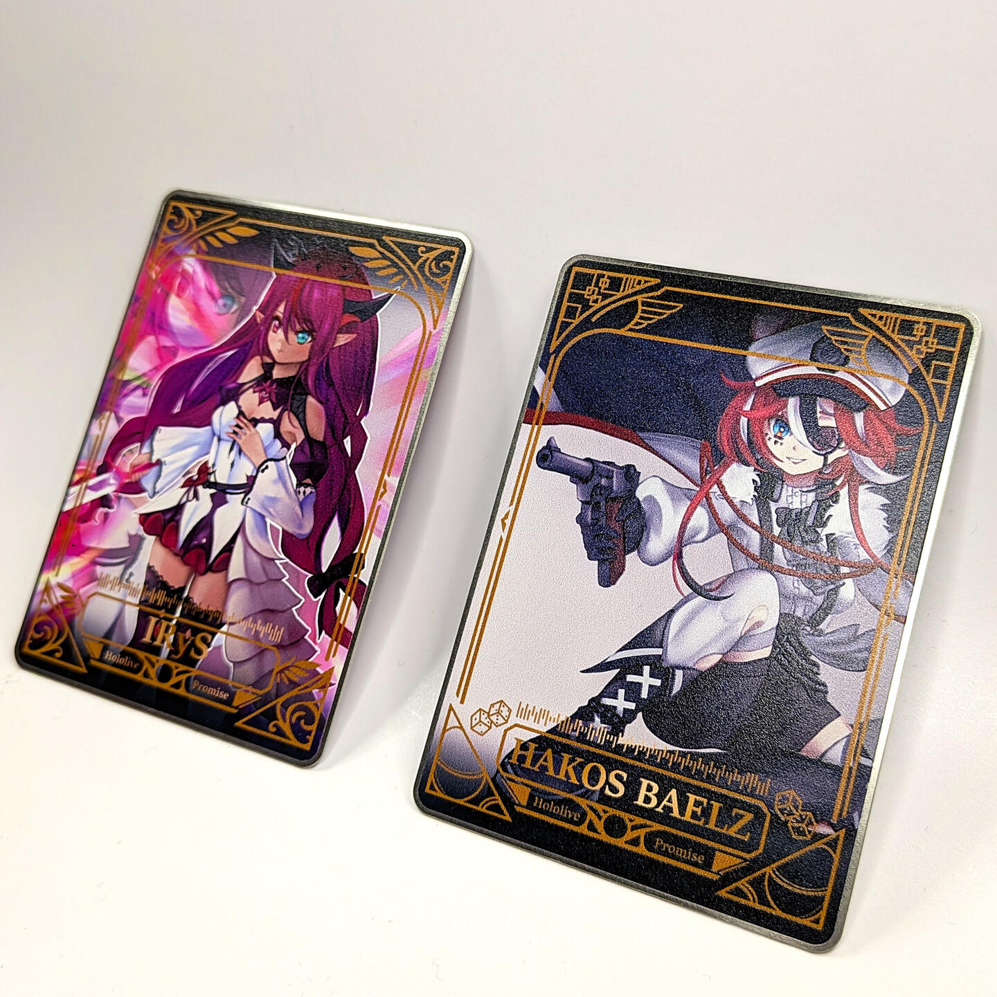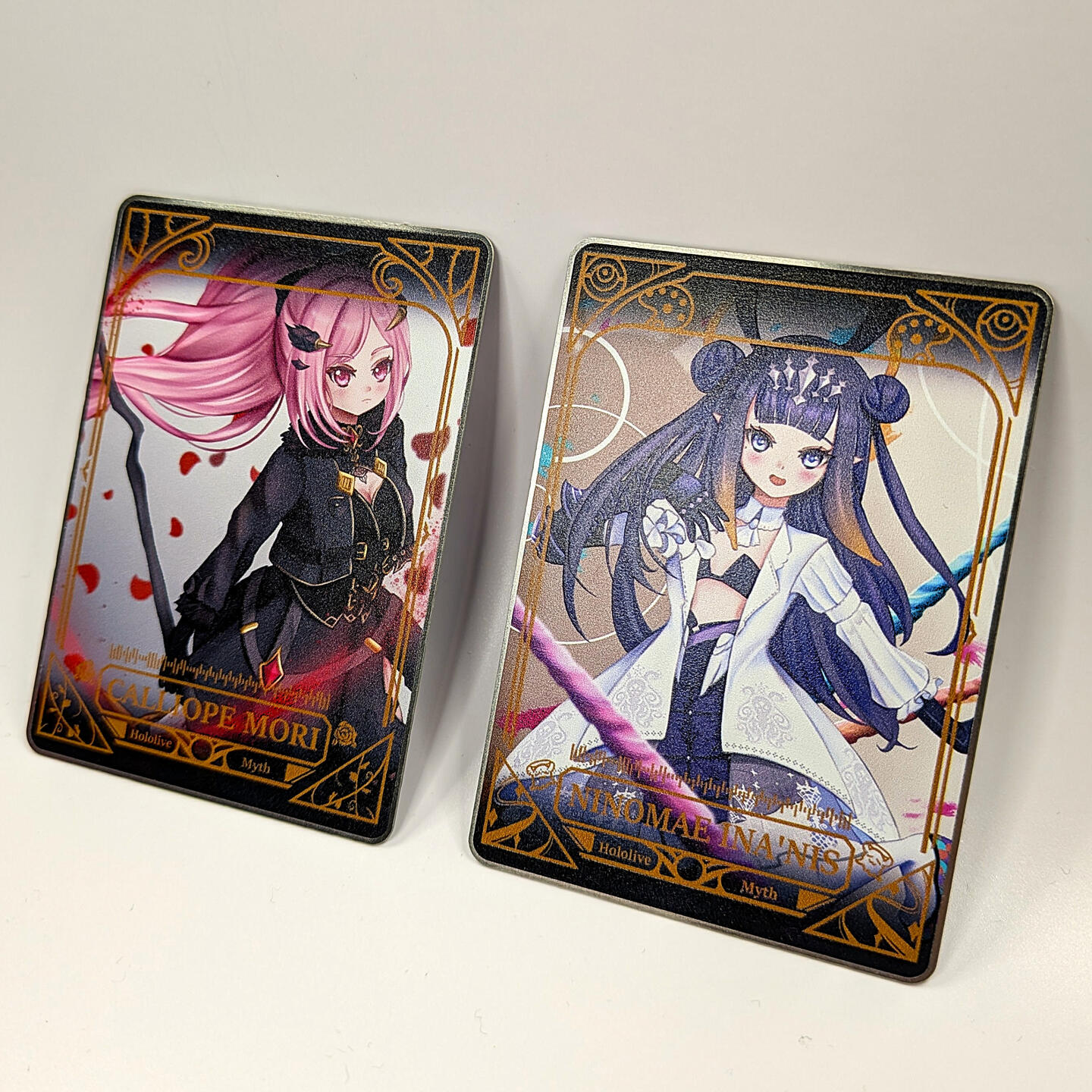 Metal Collectable cardsThe original idea for this merch item was to simply create custom trading cards with of some popular anime or VTuber characters.Through different itteration, the cards were converted from paper to metal to offer a more premium feel in the hand.Specs: 63 mm x 88 mm (standard TCG size), stainless steel